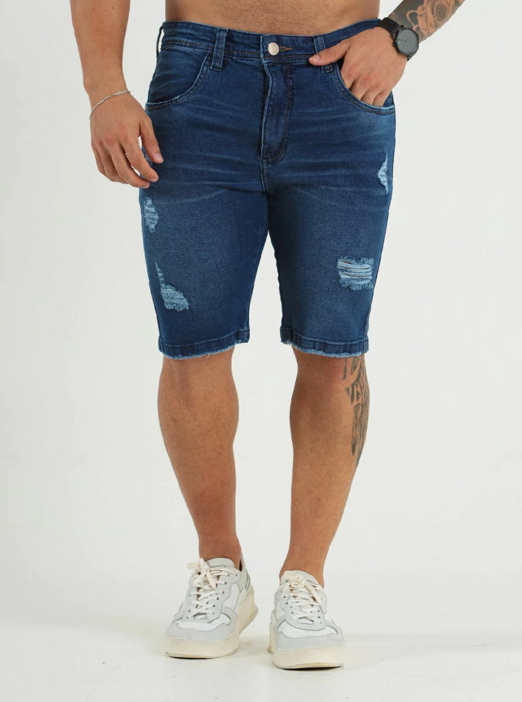 Apresentamos a Bermuda Skinny Destroyd com Lycra, uma peça que une conforto e estilo de forma única. Com uma lavagem clara que traz um ar moderno e descontraído, ela é perfeita para quem busca um visual autêntico.
